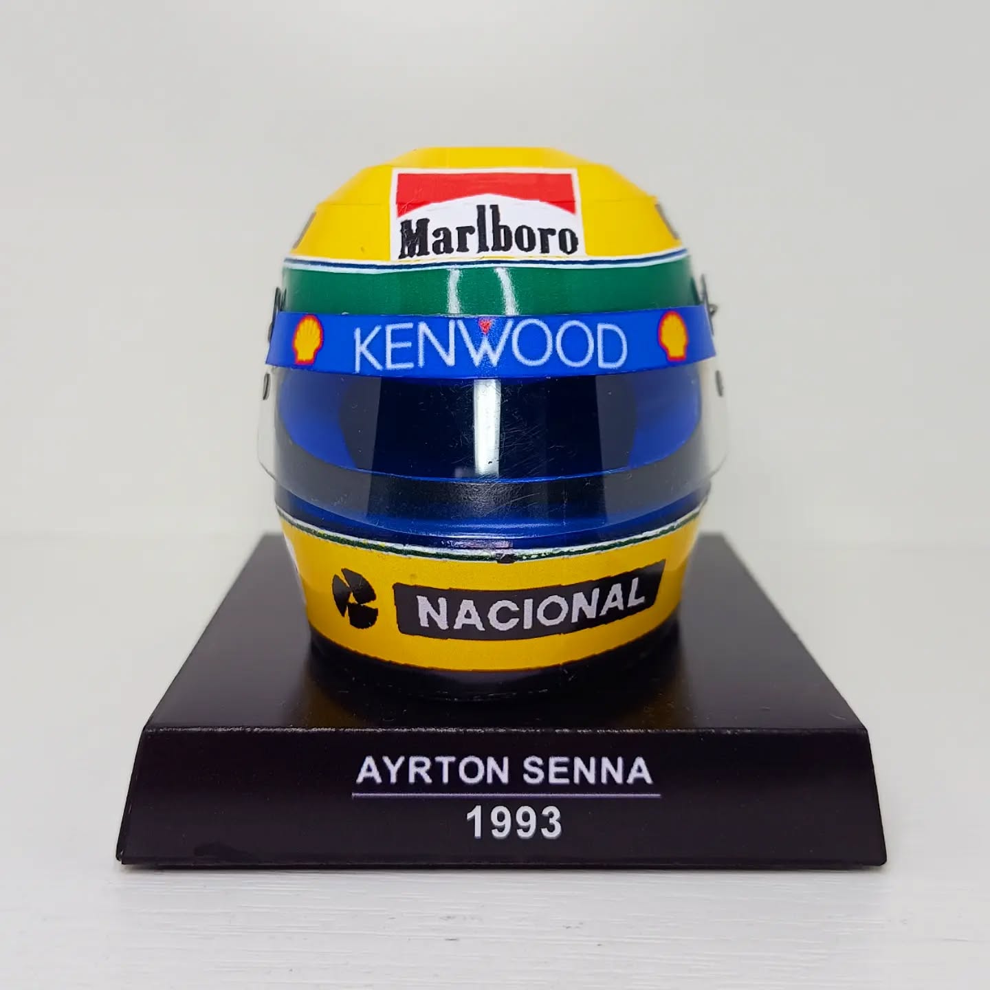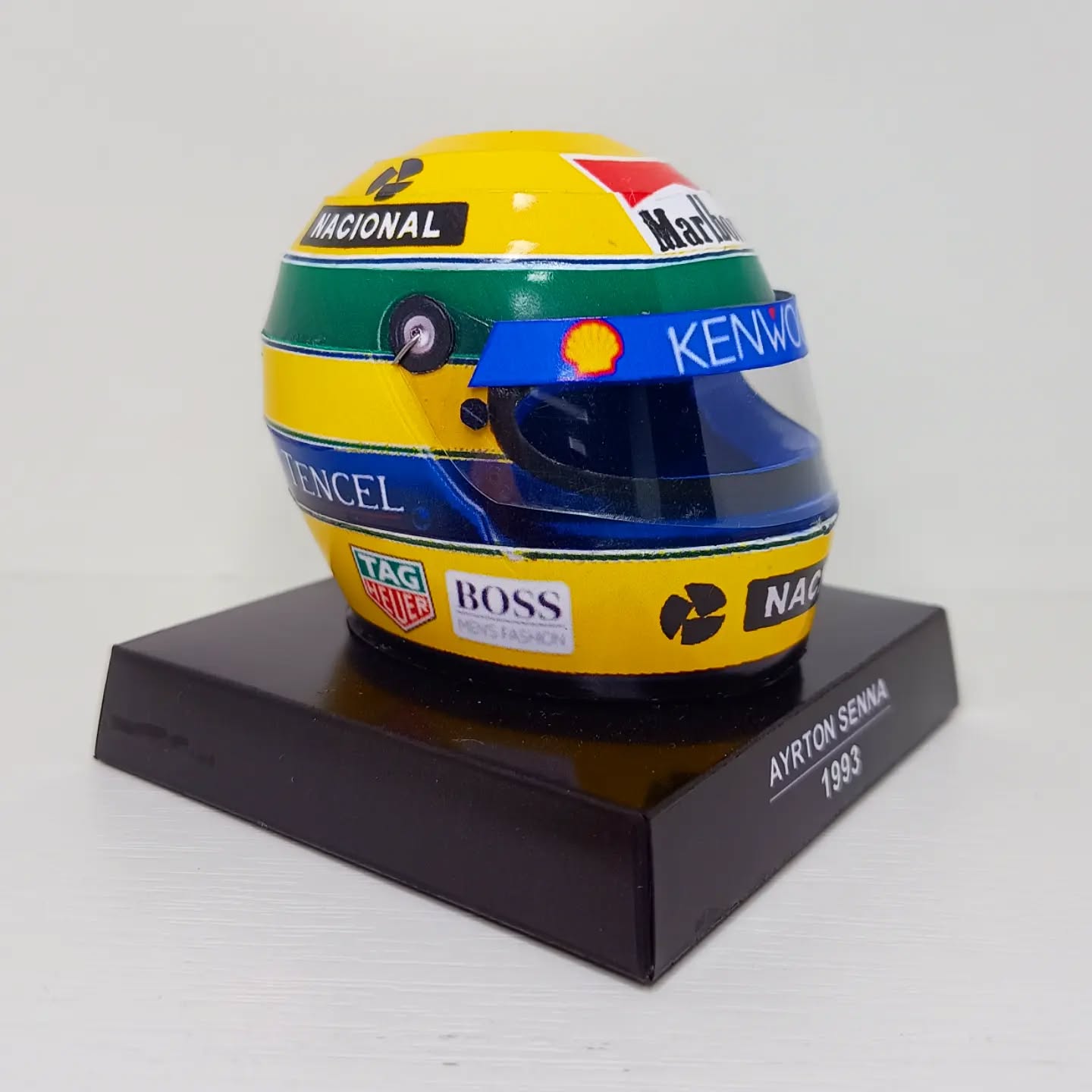 O capacete que Ayrton Senna usou em sua última temporada pela McLaren, em 1993.