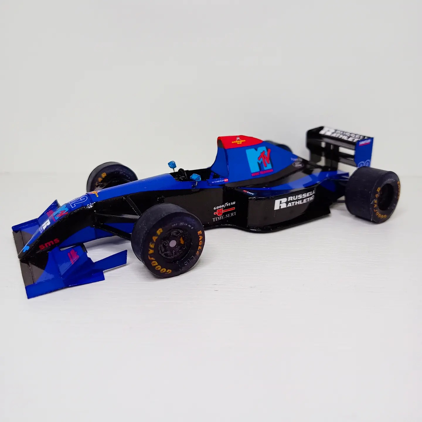 O belíssimo carro da Simtek com a qual Roland Ratzenberger disputou seu único grande prêmio, no GP do Pacífico, antes de perder a vida a bordo do mesmo carro nos treinos do GP de San Marino, em Ímola.